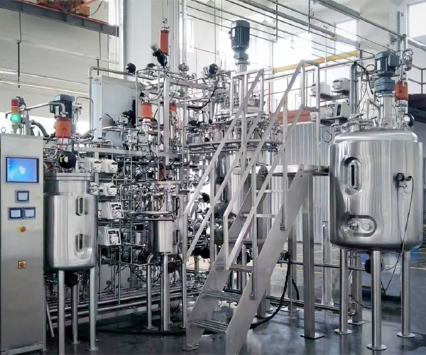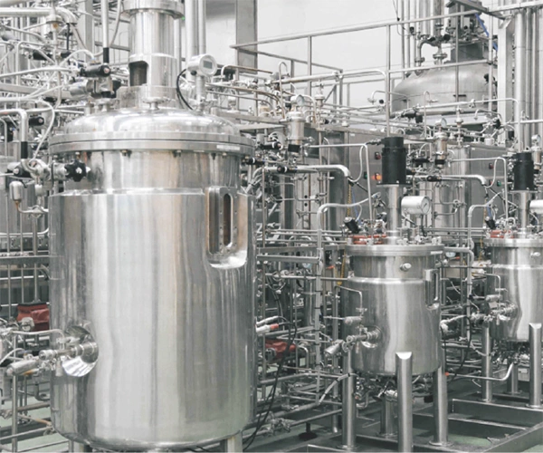 A fermentation system is a system primarily composed of fermentation tanks, also known as seed tanks or crystallization tanks. It is widely used in pharmaceutical plants, fine chemical processing plants, biopharmaceutical companies, etc. These tanks are designed with a jacket and insulation layer to facilitate heating, cooling, and insulation. Both the tank body and upper and lower heads (or cones) undergo processing with spun R-angle, while the inner tank wall is treated with mirror polishing to achieve a surface roughness of Ra≤0.4μm, ensuring no dead corners and thus enabling materials to be mixed and fermented in a pollution-free environment. Furthermore, the equipment is furnished with air breathers, cleaning balls, sanitary manholes, sight glasses, sight lights, and other essential devices.
